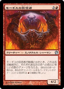 | Rules | When Fanatic of Mogis enters the battlefield, it deals damage to each opponent equal to your devotion to red. (Each in the mana costs of permanents you control counts toward your devotion to red.) |