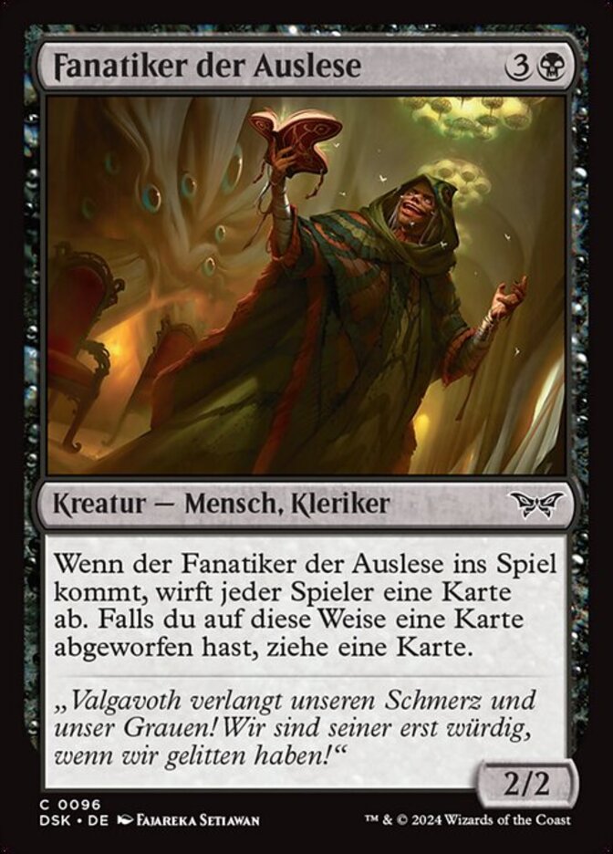 | Rules | When Fanatic of the Harrowing enters, each player discards a card. If you discarded a card this way, draw a card. |