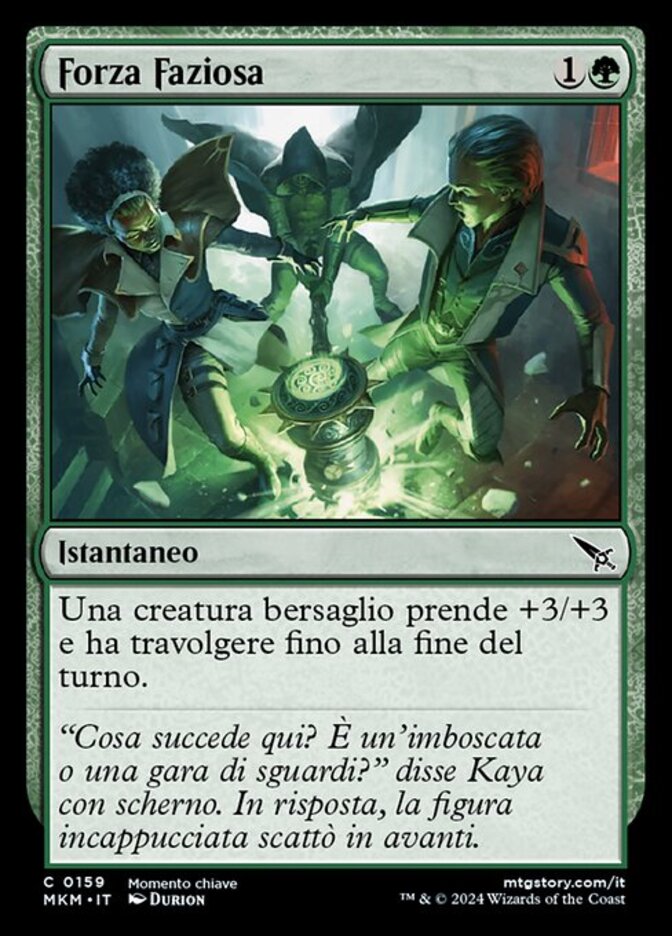 | Rules | Target creature gets +3/+3 and gains trample until end of turn. |