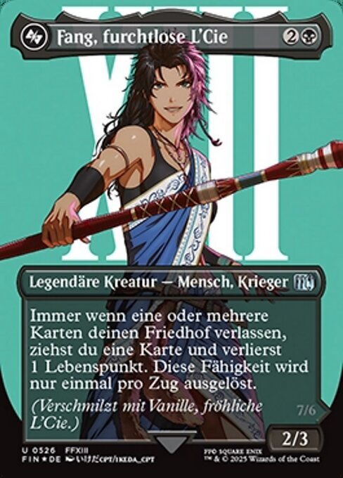 | Rules | Whenever one or more cards leave your graveyard, you draw a card and you lose 1 life. This ability triggers only once each turn. (Melds with Vanille, Cheerful l'Cie.) |