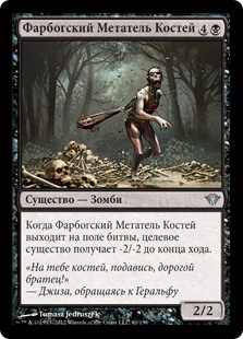 | Rules | When Farbog Boneflinger enters the battlefield, target creature gets -2/-2 until end of turn. |