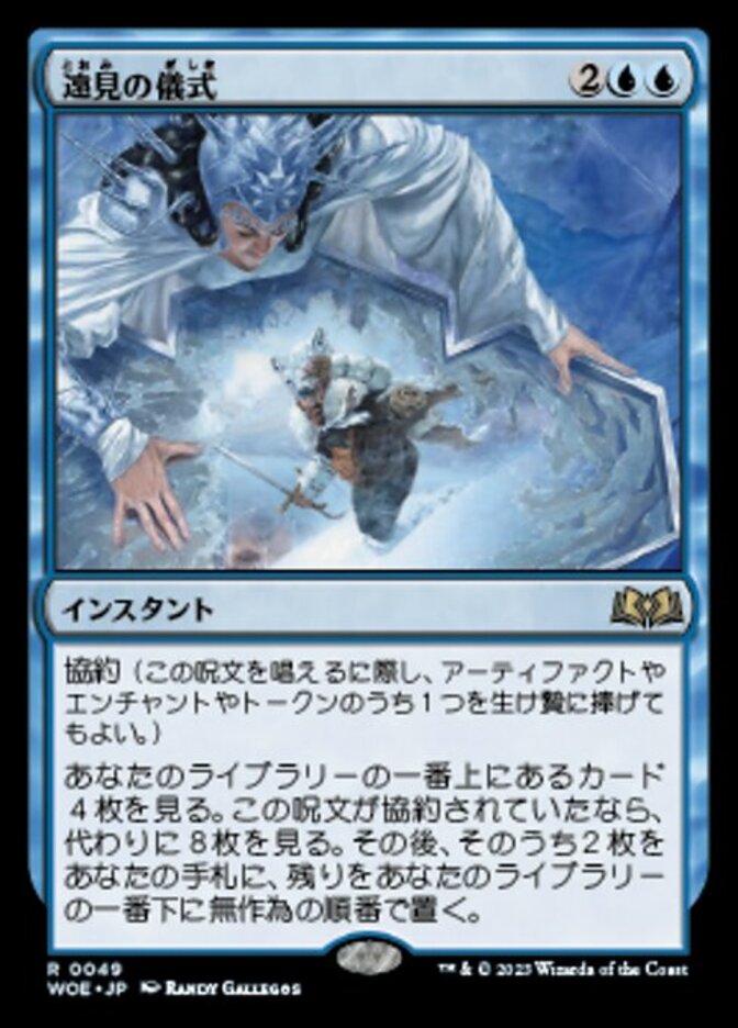 | Rules | Bargain (You may sacrifice an artifact, enchantment, or token as you cast this spell.) Look at the top four cards of your library. If this spell was bargained, look at the top eight cards of your library instead. Put two of them into your hand and the rest on the bottom of your library in a random order. |