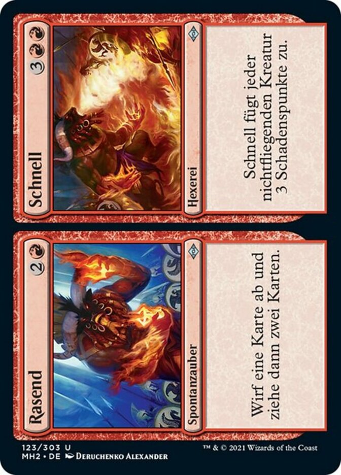 | Rules | Discard a card, then draw two cards. // Furious deals 3 damage to each creature without flying. |