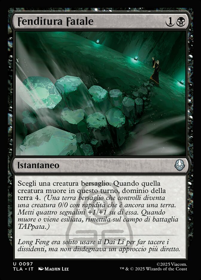 | Rules | Choose target creature. When that creature dies this turn, you earthbend 4. (Target land you control becomes a 0/0 creature with haste that's still a land. Put four +1/+1 counters on it. When it dies or is exiled, return it to the battlefield tapped.) |