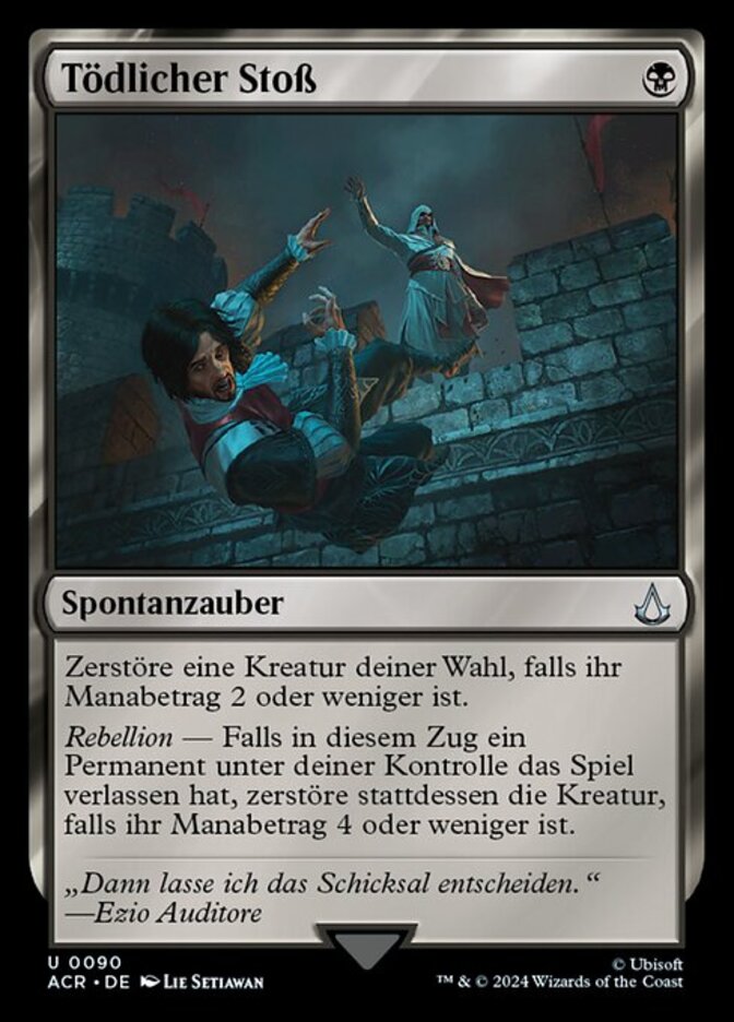 | Rules | Destroy target creature if it has mana value 2 or less. Revolt — Destroy that creature if it has mana value 4 or less instead if a permanent you controlled left the battlefield this turn. |