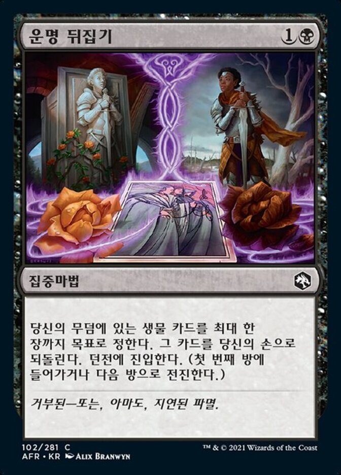 | Rules | Return up to one target creature card from your graveyard to your hand. Venture into the dungeon. (Enter the first room or advance to the next room.) |