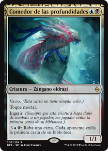 | Rules | Devoid (This card has no color.) Deathtouch Ingest (Whenever this creature deals combat damage to a player, that player exiles the top card of their library.) : Draw a card. Each opponent exiles the top card of their library. |