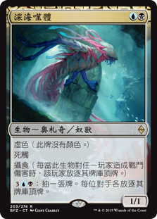 | Rules | Devoid (This card has no color.) Deathtouch Ingest (Whenever this creature deals combat damage to a player, that player exiles the top card of their library.) : Draw a card. Each opponent exiles the top card of their library. |