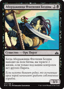 Rules When Fathom Fleet Boarder enters the battlefield, you lose 2 life unless you control another Pirate.