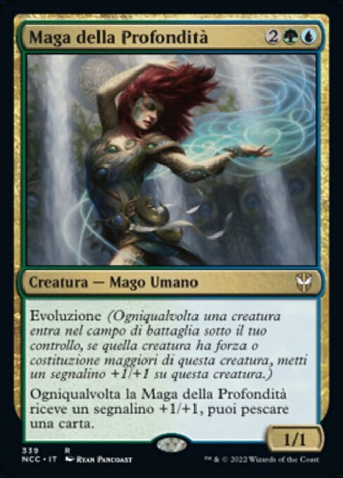 | Rules | Evolve (Whenever a creature enters the battlefield under your control, if that creature has greater power or toughness than this creature, put a +1/+1 counter on this creature.) Whenever a +1/+1 counter is put on Fathom Mage, you may draw a card. |