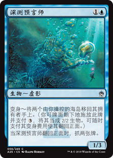 | Rules | Morph—Return two Islands you control to their owner's hand. (You may cast this card face down as a 2/2 creature for . Turn it face up any time for its morph cost.) When Fathom Seer is turned face up, draw two cards. |