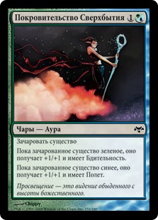 | Rules | Enchant creature As long as enchanted creature is green, it gets +1/+1 and has vigilance. As long as enchanted creature is blue, it gets +1/+1 and has flying. |