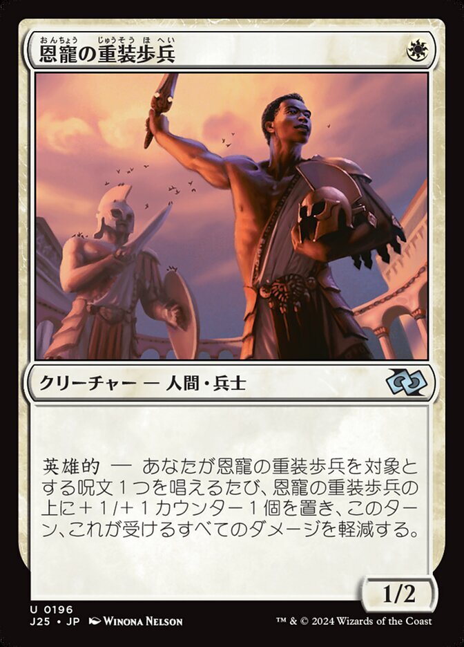 | Rules | Heroic — Whenever you cast a spell that targets Favored Hoplite, put a +1/+1 counter on Favored Hoplite and prevent all damage that would be dealt to it this turn. |