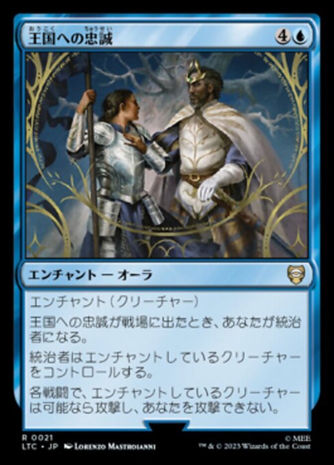 | Rules | Enchant creature When Fealty to the Realm enters the battlefield, you become the monarch. The monarch controls enchanted creature. Enchanted creature attacks each combat if able and can't attack you. |