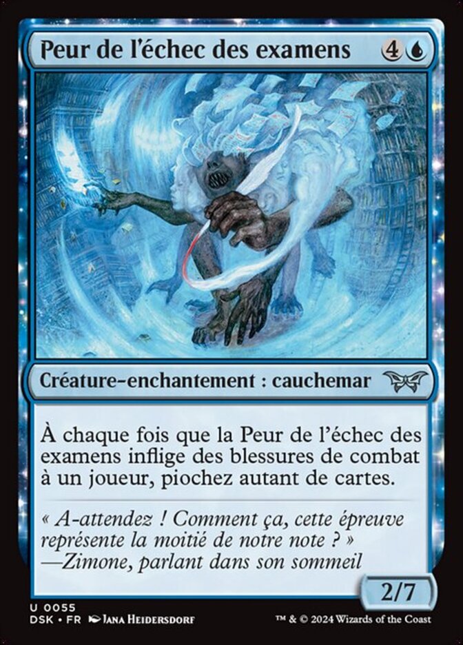 | Rules | Whenever Fear of Failed Tests deals combat damage to a player, draw that many cards. |