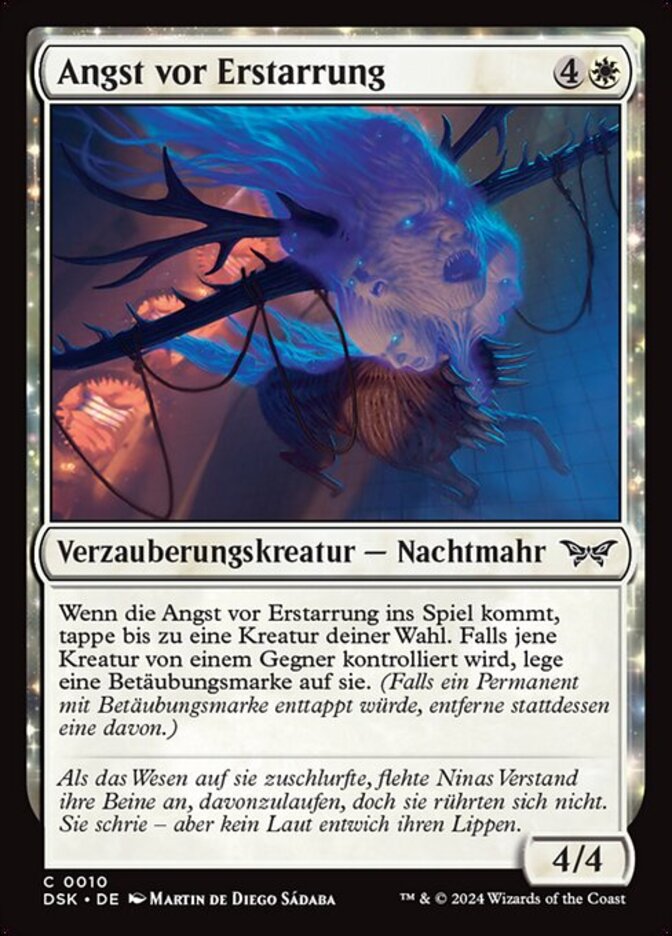 | Rules | When Fear of Immobility enters, tap up to one target creature. If an opponent controls that creature, put a stun counter on it. (If a permanent with a stun counter would become untapped, remove one from it instead.) |