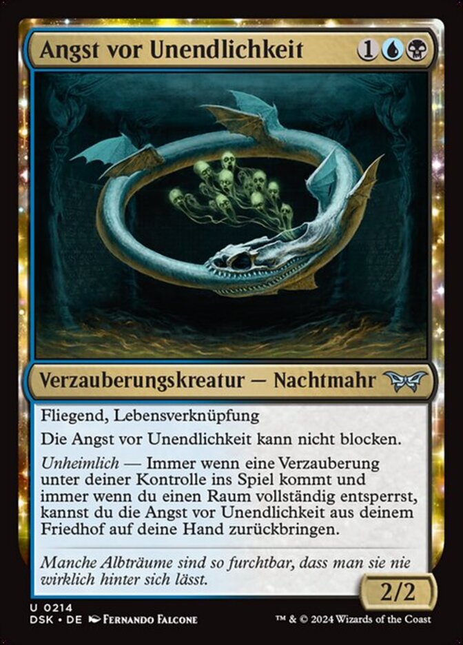 | Rules | Flying, lifelink Fear of Infinity can't block. Eerie — Whenever an enchantment you control enters and whenever you fully unlock a Room, you may return Fear of Infinity from your graveyard to your hand. |