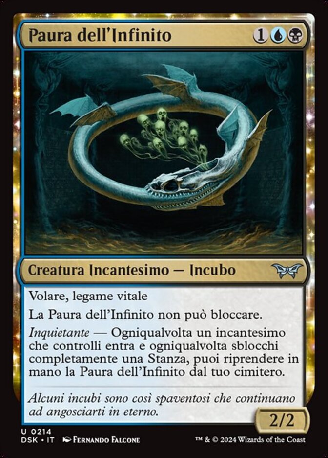 | Rules | Flying, lifelink Fear of Infinity can't block. Eerie — Whenever an enchantment you control enters and whenever you fully unlock a Room, you may return Fear of Infinity from your graveyard to your hand. |