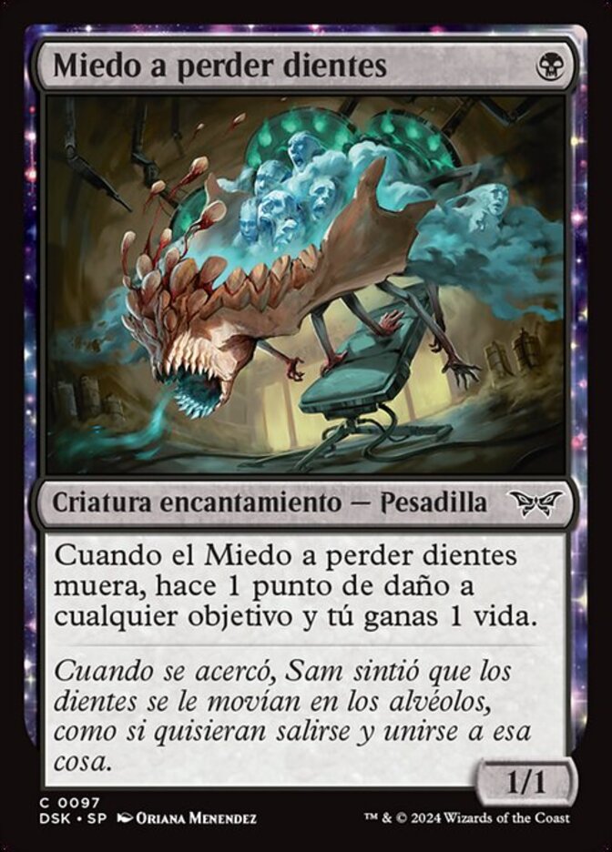| Rules | When Fear of Lost Teeth dies, it deals 1 damage to any target and you gain 1 life. |
