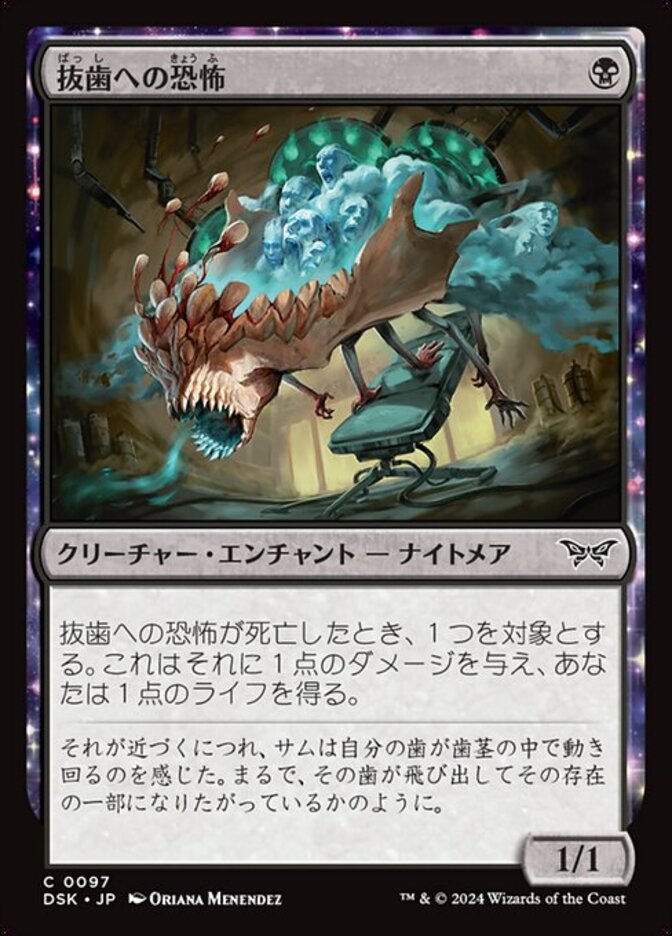 | Rules | When Fear of Lost Teeth dies, it deals 1 damage to any target and you gain 1 life. |