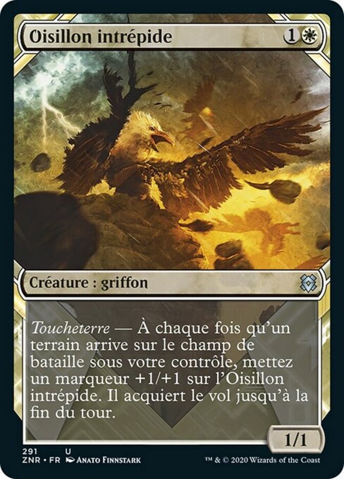 | Rules | Landfall — Whenever a land enters the battlefield under your control, put a +1/+1 counter on Fearless Fledgling. It gains flying until end of turn. |