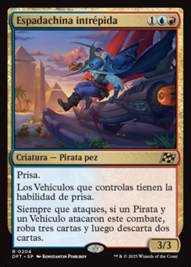 | Rules | Haste Vehicles you control have haste. Whenever you attack, if a Pirate and a Vehicle attacked this combat, draw three cards, then discard two cards. |