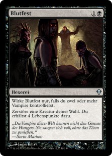 | Rules | Cast this spell only if you control two or more Vampires. Destroy target creature. You gain 4 life. |