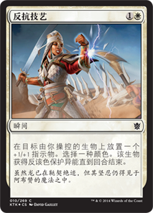 | Rules | Put a +1/+1 counter on target creature you control. It gains protection from the color of your choice until end of turn. (It can't be blocked, targeted, dealt damage, enchanted, or equipped by anything of that color.) |