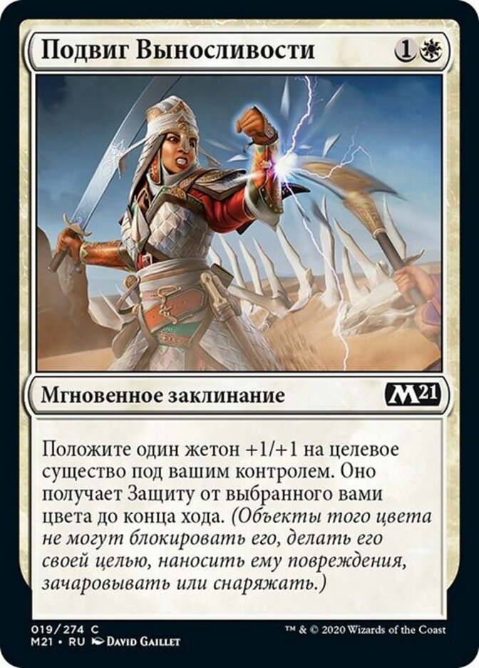 | Rules | Put a +1/+1 counter on target creature you control. It gains protection from the color of your choice until end of turn. (It can't be blocked, targeted, dealt damage, enchanted, or equipped by anything of that color.) |
