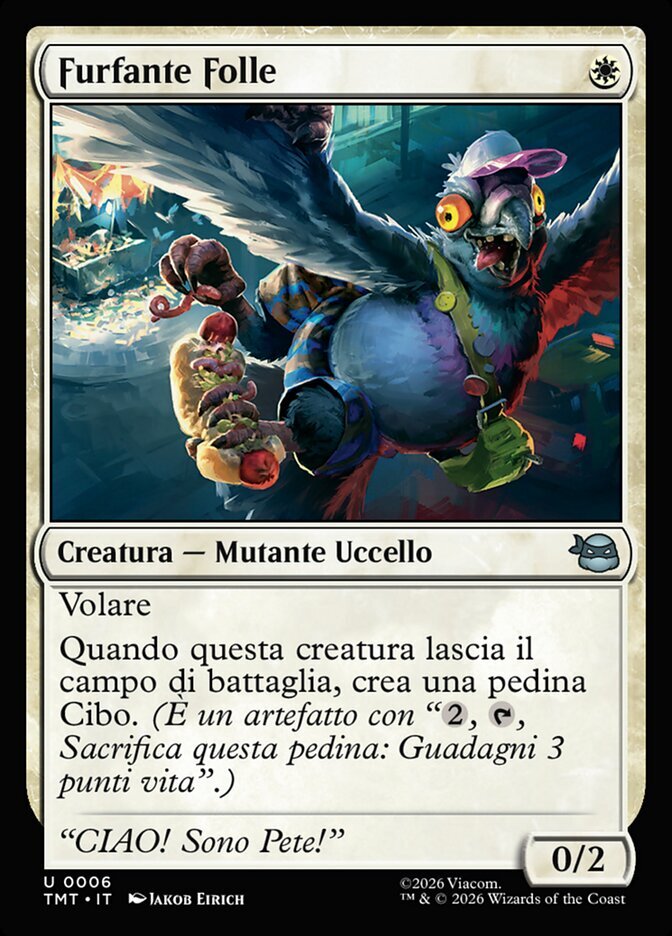 | Rules | Flying When this creature leaves the battlefield, create a Food token. (It's an artifact with ", , Sacrifice this token: You gain 3 life.") |