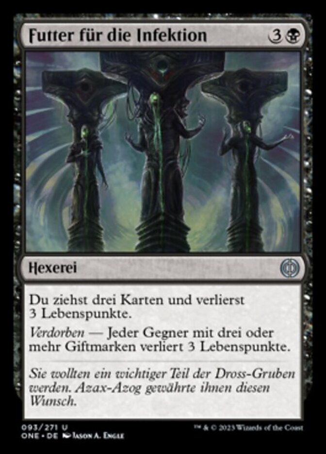 | Rules | You draw three cards and you lose 3 life. Corrupted — Each opponent who has three or more poison counters loses 3 life. |