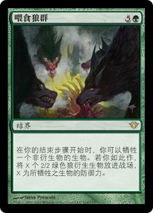 | Rules | At the beginning of your end step, you may sacrifice a nontoken creature. If you do, create X 2/2 green Wolf creature tokens, where X is the sacrificed creature's toughness. |