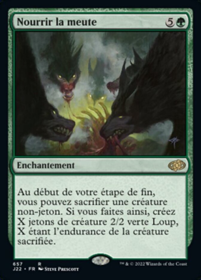 | Rules | At the beginning of your end step, you may sacrifice a nontoken creature. If you do, create X 2/2 green Wolf creature tokens, where X is the sacrificed creature's toughness. |