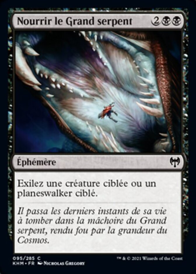| Flavor | He spent the final moments of his existence tumbling down the length of the serpent's jaws, driven mad by the magnitude of the Cosmos. |