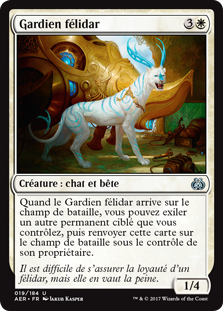 | Rules | When Felidar Guardian enters the battlefield, you may exile another target permanent you control, then return that card to the battlefield under its owner's control. |