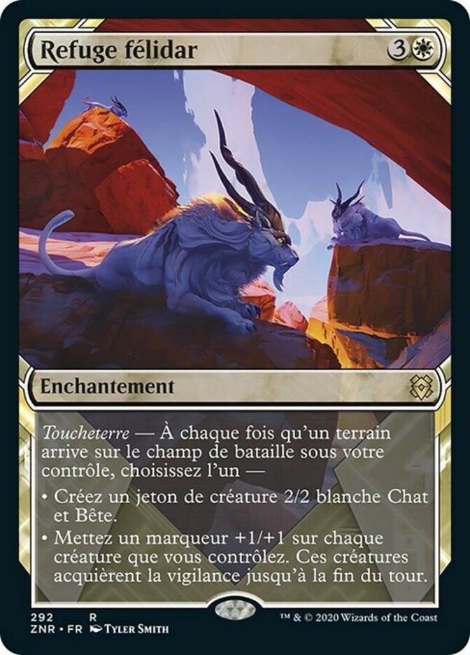 | Rules | Landfall — Whenever a land enters the battlefield under your control, choose one — • Create a 2/2 white Cat Beast creature token. • Put a +1/+1 counter on each creature you control. Those creatures gain vigilance until end of turn. |