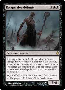 | Rules | Whenever Fell Shepherd deals combat damage to a player, you may return to your hand all creature cards that were put into your graveyard from the battlefield this turn. , Sacrifice another creature: Target creature gets -2/-2 until end of turn. |