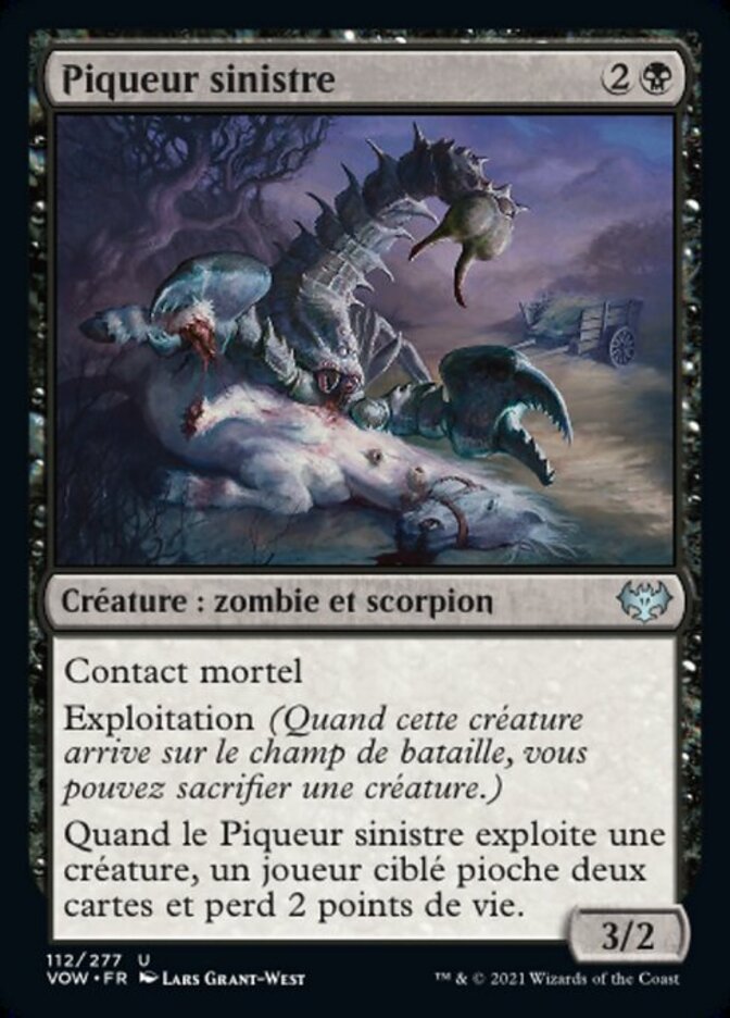 | Rules | Deathtouch Exploit (When this creature enters the battlefield, you may sacrifice a creature.) When Fell Stinger exploits a creature, target player draws two cards and loses 2 life. |