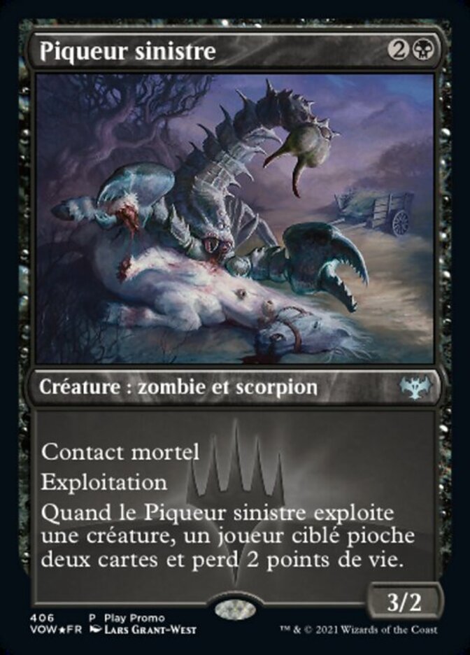 | Rules | Deathtouch Exploit (When this creature enters the battlefield, you may sacrifice a creature.) When Fell Stinger exploits a creature, target player draws two cards and loses 2 life. |