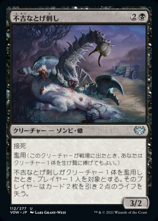 | Rules | Deathtouch Exploit (When this creature enters the battlefield, you may sacrifice a creature.) When Fell Stinger exploits a creature, target player draws two cards and loses 2 life. |