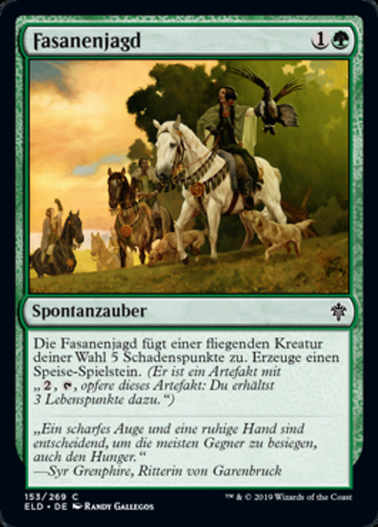 | Rules | Fell the Pheasant deals 5 damage to target creature with flying. Create a Food token. (It's an artifact with ", , Sacrifice this artifact: You gain 3 life.") |
