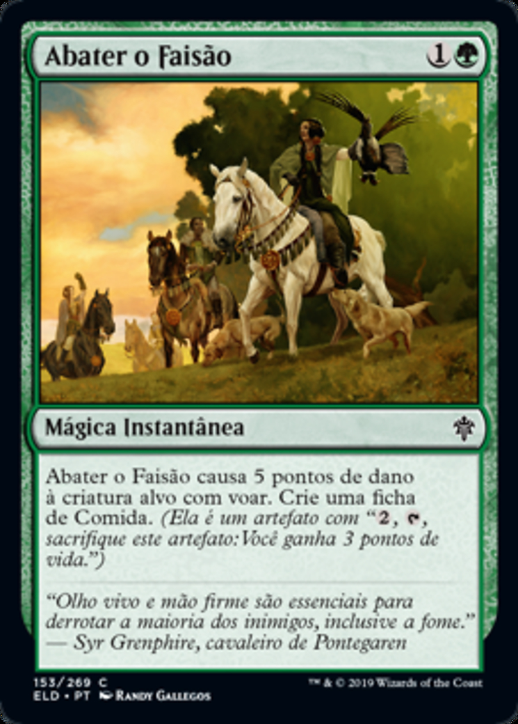 Rules Fell the Pheasant deals 5 damage to target creature with flying. Create a Food token. (It's an artifact with ", , Sacrifice this artifact: You gain 3 life.")