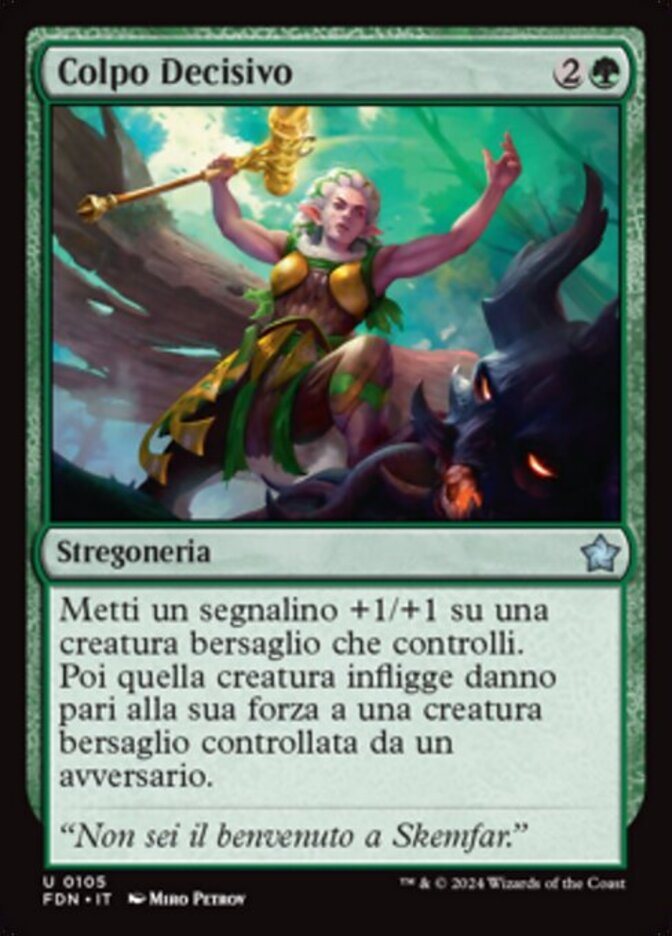 | Rules | Put a +1/+1 counter on target creature you control. Then that creature deals damage equal to its power to target creature an opponent controls. |