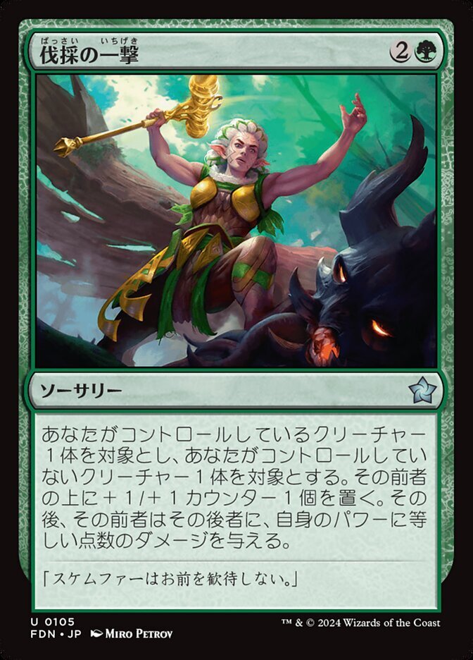 | Rules | Put a +1/+1 counter on target creature you control. Then that creature deals damage equal to its power to target creature an opponent controls. |