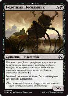 | Rules | Improvise (Your artifacts can help cast this spell. Each artifact you tap after you're done activating mana abilities pays for .) Fen Hauler can't be blocked by artifact creatures. |