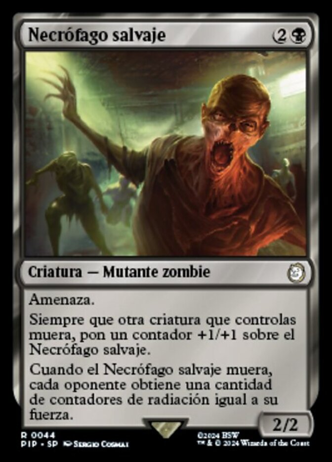 | Rules | Menace Whenever another creature you control dies, put a +1/+1 counter on Feral Ghoul. When Feral Ghoul dies, each opponent gets a number of rad counters equal to its power. |