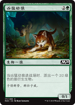 | Rules | When Ferocious Pup enters the battlefield, create a 2/2 green Wolf creature token. |