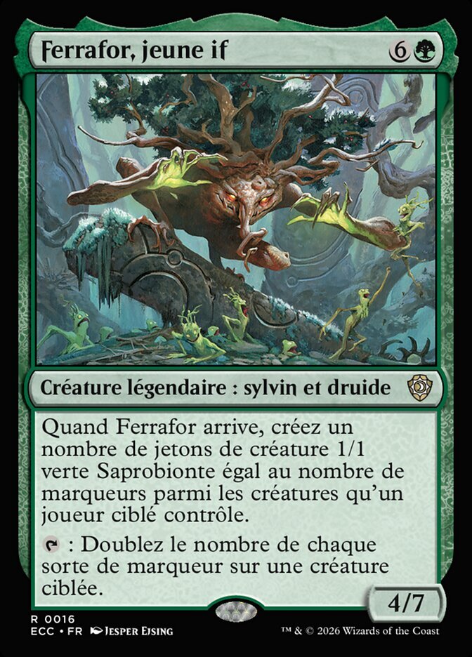 | Rules | When Ferrafor enters, create a number of 1/1 green Saproling creature tokens equal to the number of counters among creatures target player controls. : Double the number of each kind of counter on target creature. |