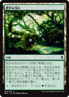 When Fertile Thicket enters the battlefield, you may look at the top five cards of your library. If you do, reveal up to one basic land card from among them, then put that card on top of your library and the rest on the bottom in any order.