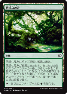 | Rules | Fertile Thicket enters the battlefield tapped. When Fertile Thicket enters the battlefield, you may look at the top five cards of your library. If you do, reveal up to one basic land card from among them, then put that card on top of your library and the rest on the bottom in any order. : Add . |